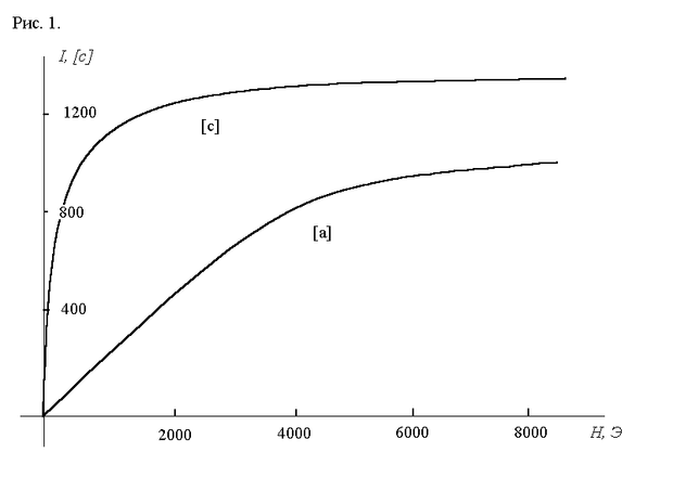 Рис.1. Кривые намагничивания I(Н) монокристалла кобальта, снятые