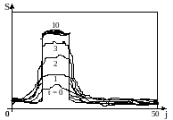 Эффект наличия латеральных связей с радиусом действия порядка размеров сети проявляется в следующем. Если на каждый нейрон подать (например, через связи от сенсорных входов mij) имеющий небольшой максимум случайный сигнал Si, то в процессе релаксации сети осуществляется повышение его контрасности. В результате вокруг первоначального максимума образуется “пузырек” выходной активности нейронов (рис. 2.3.).