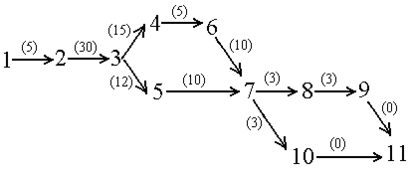 Из таблицы видно, что критическими работами являются 1, 2, 3, 4, 6, 7, 8, 9, 11, которые и образуют в сети G критический путь. Расчеты выполнены при Т=71.