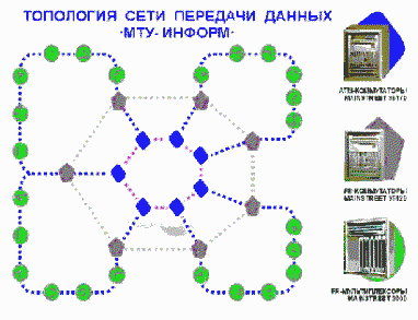 Реализованная таким образом сеть передачи цифровой информации имеет универсальную архитектуру, способную работать в режимах "прозрачный канал" для передачи как пакетов, так и ячеек. Это позволяет оптимизировать сеть, сохраняя экономию пропускной способности при низкоскоростном доступе извне и обеспечивает быстрый обмен информацией, при котором экономия ресурсов не является первостепенным требованием. Для пользователей же сеть оказывается "прозрачной" и с них снимаются проблемы по поиску и приобретению какого-либо дополнительного оборудования, а также по стыковке их сетей. Компания "МТУ-Информ" полностью берет на себя всю организацию прямого доступа к пользователям и контролирует работоспособность канала вплоть до розетки абонента. Первая очередь сети рассчитана на 10000-17000 абонентов (нижняя граница достигается при неравномерном распределении абонентов по узлам).