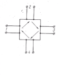На рис. 4 и 5 схематически изображены два других типа ферритовых циркуляторов. В четырёхплечем устройстве, показанном на рис. 4, используется эффект Фарадея. Ферритовый стержень, находящийся в продольном постоянном магнитном поле, располагается вдоль оси круглого волновода, возбуждаемого на волне типа Н11. К этому волноводу под углами 45град подключаются четыре входа, выполненных на базе стандартных прямоугольных волноводов.