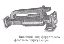 В трёхплечем циркуляторе, изображённом на рис. 5, используется Y-образный 120-градусный волноводный тройник в плоскости Н. Ферритовый цилиндр располагается в центре тройника; постоянное магнитное поле Но, перпендикулярно плоскости чертежа.