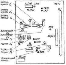 Рис.8. Расположение органов регулировки в модуле цветности МЦ-2.