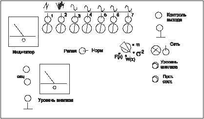 - семь источников независимых случайных сигналов (одного шумового с нормальным распределением, одного треугольного и пять гармонических). Дисперсия случайных сигналов регулируется соответствующими потенциометрами ;