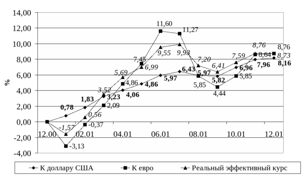 Продемонстрированная в 2001 г. предсказуемость движения валютного курса рубля в сочетании с устойчивой тенденцией к реальному укреплению национальной денежной единицы способствовали процессу восстановления доверия экономических субъектов к проводимой политике в сфере валютных отношений.