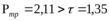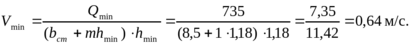 hmin = 1,25 м при Qmin = 7,35 м3/с.