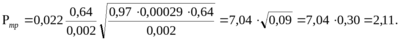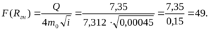 при принятом коэффициенте шероховатости ( n ), определяем гидравлически наивыгоднейший радиус сечения по таблице X[1]. Rгн = 1,54 м. -