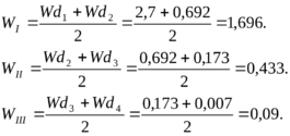 | Wd, см/с. | 2,7 - 0,692 | 0,692 - 0,173 | 0,173 - 0,007 | 0,007 |