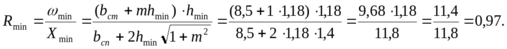 Вычисляется минимальный гидравлический радиус живого сечения канала: