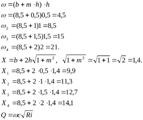 | h, м. | , м2. | X, м2. | Q, м3/с. | Расчетные формулы | ||