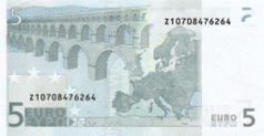 Существует семь номиналов банкнотов евро - 5, 10, 20, 50, 100, 200 и 500 евро. Банкноты выполнены в едином стиле, но в зависимости от номинала различаются цветовой гаммой и размерами. На лицевой стороне банкнотов изображены окна и ворота, являющиеся символом открытости и европейского духа сотрудничества. На оборотной стороне банкнотов изображены мосты символизирующие открытое общение. К 1 января 2002 года напечатано 14,5 млрд. банкнотов.