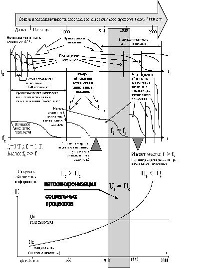 Соответственно, при полной формальной идентичности построения, содержательное отличие верхнего и нижнего графиков в верхней части рис. 3 друг от друга — в разном характере соизмеримости с астрономическим эталоном времени (год: смена сезонов при обращении Земли вокруг Солнца) процесса смены поколений людей и процесса смены поколений технологий и жизненных навыков.