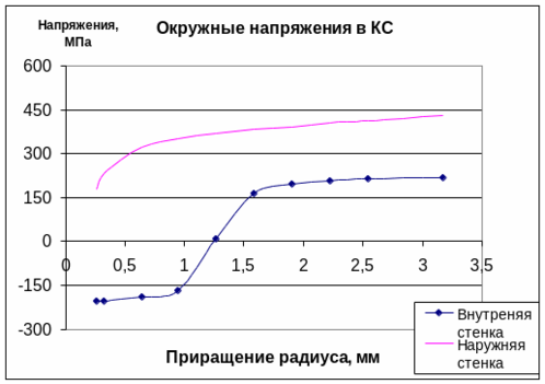 Принимаем окружные напряжения для каждой оболочки, согласно их температурам и деформации En по диаграмме деформирования стали ЭП53 и сплава БрХ08: (значения в Мпа)