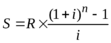 Второй сомножитель этого выражения – ((1 + i)n – 1)/i называется множителем наращения аннуитета. Так же как и в случае с начислением процентов на единичные суммы, значения таких множителей табулированы, что позволяет облегчить процентные вычисления денежных потоков.