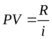 В случае если член вечной ренты R ежегодно увеличивается с постоянным темпом прироста g, то приведенная стоимость такой ренты определяется по формуле