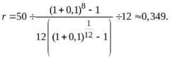 Если же взносы на депозит производить ежемесячно (p = 12), то, снова применяя формулу (2.3.6) и деля полученный результат на 12, найдем