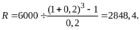Для полного погашения задолженности по ссуде понадобится произвести три погасительных платежа по 2848 тыс. руб. каждый. Не вдаваясь в подробности расчета структуры срочной уплаты по каждому году, отметим, что в сумме предприятию придется заплатить по займу 8544 тыс. руб., т. е. общая сумма процентов составит 2544 тыс. руб. (8544 – 6000), что заметно выше, чем по первому варианту.