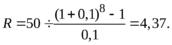 Аналогичный подход может быть применен к формированию амортизационного фонда. Известно, что амортизация основных фондов – важнейшая составная часть чистого денежного потока предприятия, остающаяся в его распоряжении. В каждом рубле получаемой предприятием выручки содержится доля амортизационных отчислений. Поэтому нет ничего противоестественного в том, чтобы предприятие, «расщепляя» поступающую выручку, перечисляло на банковский депозит сумму амортизации по каждому платежу от покупателя. В этом случае накопление амортизационного фонда происходило бы значительно быстрее за счет начисления процентов. Предположим, что по основным фондам первоначальной стоимостью 50 млн. руб. предприятие начисляет амортизацию по годовой ставке 12,5 % (линейный метод). Срок службы оборудования – 8 лет. Ежегодно начисляется 6,25 млн. руб. амортизационных отчислений. Но если предприятие располагает возможностью размещения денежных средств хотя бы под 10 % годовых, то для накопления 50 млн. руб. в течение 8 лет ему понадобится ежегодно размещать на депозите лишь по 4,37 млн. руб. Преобразовав формулу (2.3.2) из предыдущей главы, получим