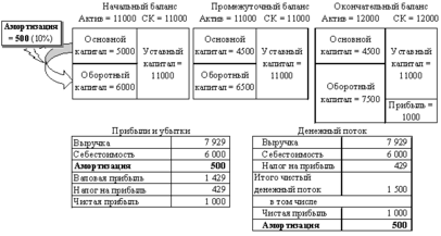 Рис. 1.3.2. Влияние амортизации на прибыль, денежный поток