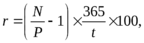 r = (10/8,2 – 1)365/40 100 ≈ 200,3 %.