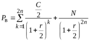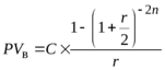 Такое представление позволяет избежать громоздкой процедуры многократного дисконтирования годового дохода и последующего суммирования полученных результатов. Еще одно важное преимущество такой формы представления – возможность использования финансовых таблиц, в которых приводятся значения множителей дисконтирования (второй сомножитель в формуле 3.4.3). При выплате купонного дохода два раза в год (что является общепринятой практикой) формула (3.4.2) несколько изменится: