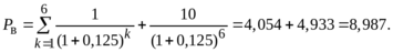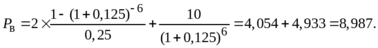 Внутренняя стоимость облигации теперь несколько ниже и составляет 8,987 тыс. руб. Этот же самый результат будет получен, если применить формулы (3.4.1) и (3.4.5):