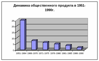 первые бюджет был признан и обнародован в 1988 г. Заимствование средств у общегосударственного ссудного фонда составило, по опубликованным данным, 63,4 млдр.руб или 13,8% всех доходов бюджета. Все же изменения в бюджете происходили, о чем может подтвердить динамика общественного продукта в 1951 – 1990г.