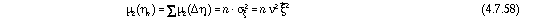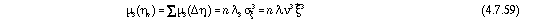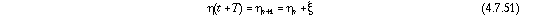 Согласно гипотезе Палмгрена-Майнера, вклад xi не зависит от предыдущих вкладов, так, что n и xi статистически независимы. В связи с этим, характеристические функции перемножаются, как это установлено правилом C в главе 2.4.2(iii). Т.к. эти функции уже определны в выражениях (4.7.50) и (4.7.47) соответственно, то характеристической функцией для распределения вероятностей в момент времени t+T будет