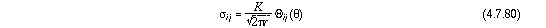 это нормированный множитель, введенный для удобства. Коэффициентом K, общим для всех компонент напряжений, обозначают интенсивность напряжений. Он зависит от формы трещины и ориентации тензора номинальных напряжений. Он, также, пропорционален преобладающей компоненте номинального напряжения, которая здесь будет обозначена через .