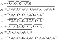 Запишем функции, полученные в пункте 2.4 в базисе {И-НЕ}. Для этого примем правила Де Моргана. Тогда функции будут иметь вид: