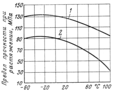 | Характер приложения механического напряжения | Предел прочности при растяжении, % к исходному |