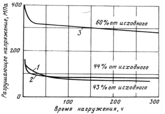 Длительное нагревание слоистых пластиков приводит в конечном счёте к довольно большому снижению их механических свойств.