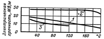 Зависимость кратковременной электрической прочности слоистых пластиков от температуры испытания