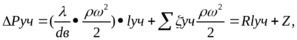 Предварительно вычисляют расход воды на каждом участке. Потери давления на трение и местные сопротивления на участке определяют отдельно по следующей формуле:
