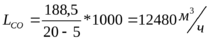 где mco – масса окиси углерода СО, поступающего в воздух помещения, г/ч;