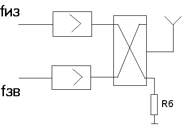 Возможно также создание усилителя мощности с совместным усилением на основе направленного ответвителя (НО). НО-это согласованная петля связи, помещенная в электромагнитное поле передаваемого по ВЧ фидеру радиосигнала [3]. Любой НО характеризуется 2 параметрами, показывающими зависимость между ответвляемой мощностью Ротв и мощностями, действующими в фидере Рф и в балластном резисторе Рб: