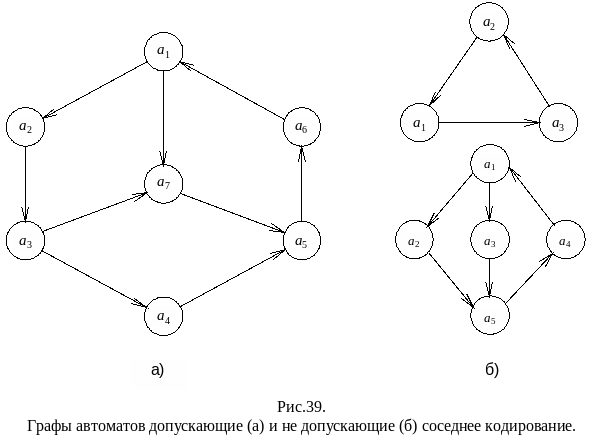 Соседнее кодирование не всегда возможно. Граф автомата, допускающее соседнее кодирование, должен удовлетворять ряду требований, а именно: