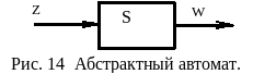 На уровне абстрактной теории понятие "работа автомата" понимается как преобразование входных слов в выходные. Можно сказать, что в абстрактном автомате отвлекаемся от его структуры - содержимого прямоугольника (рис. 14 ), рассматривая его как "черный ящик", т.е. основное внимание уделяем поведению автомата относительно внешней среды.