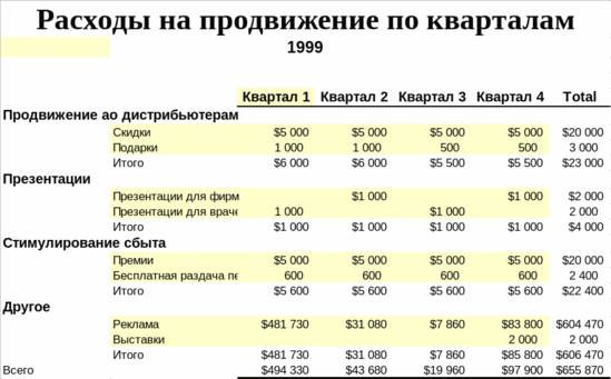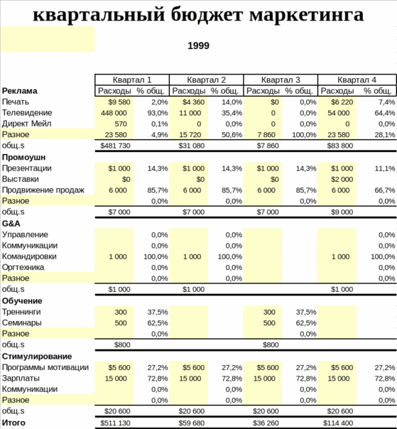 Поквартальный бюджет маркетинга