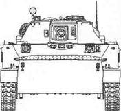 трольно-измерительны ми приборами, курсоуказателем и средствами связи (аппарат танкового переговорного устройства). Посадка механика-водителя в танк и высадка из него осуществляются через круглый люк, основание которого выступает над верхним броневым листом. В отделении управления находятся также две аккумуляторные батареи, баллон со сжатым воздухом, два углекислот-ных баллона и автомат системы противопожарного оборудования, часть ЗИП и другое оборудование.
