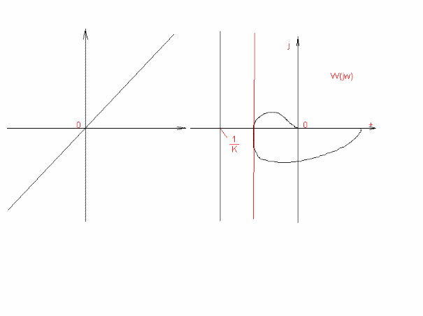 ) в плоскости s, x. Там же изображены кривые W(jw), w>0 для неособого случая, расположенные так, что возможна абсолютная устойчивость. Однако только приемлимого расположения хаоактеристик W(jw) еще недостаточно для суждения об абсолютной устойчивости : кроме этого, нужно еще потребовать, чтобы линейная замкнутоя система была асимптотически устойчивой.