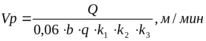 По заданной производительности выбрать ширину машины и рассчитать рабочую скорость машины Vр: