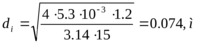 где di – внутренний диаметр трубопровода
