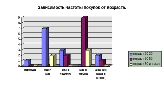 Среди людей в возрасте от 20 до 30 лет меньше постоянных покупателей - 53,8 % приобретало печенье “ всего один раз.