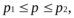 где p1, p2 - верхняя и нижняя границы интервала, определяемые по формуле: