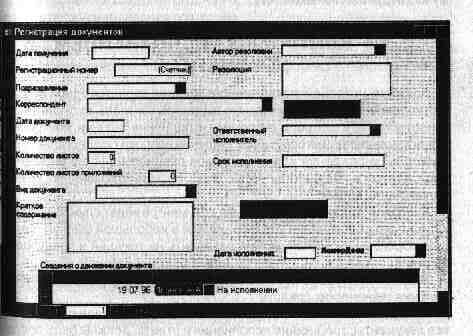 Наиболее рациональной является сегодня регистрация документов на компьютере. Но и в этом случае на экран выводится форма карточки (экранная форма РКК) с аналогичными полями и в нее заносятся сведения о документе.