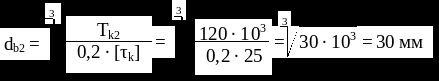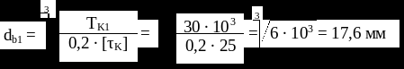 Диаметр выходного конца при допускаемом напряжении [τK] = 25 МПа