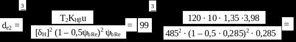 Коэффициент KHβ при консольном расположении шестерни 1,35, коэффициент ширины венца по отношению к внешнему конусному расстоянию ψ=0,285.