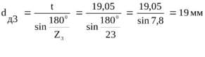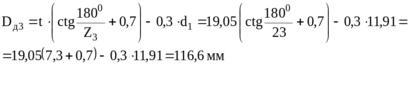 dae1 = de1 + 2me cos 1 = 250 + 2 10 cos 14054| = 264 мм
