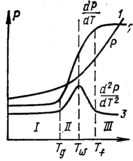 Рис. 3.1. Зависимость свойства Р и его производных в интервале стеклования (по Тамману)